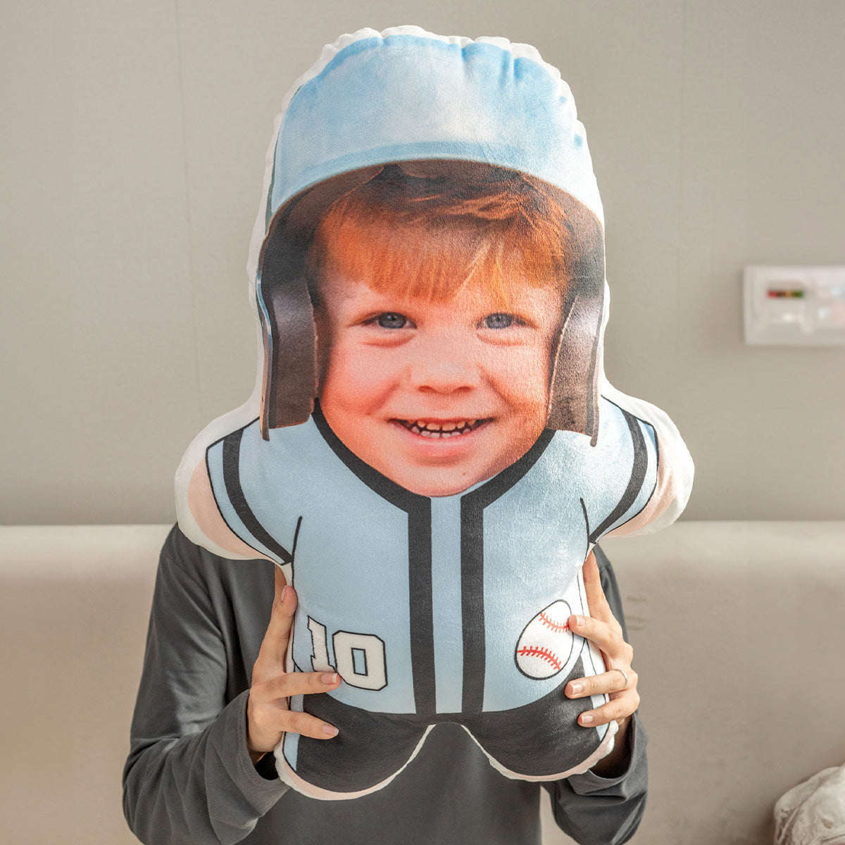 Imagine the joy and laughter as they unwrap this one-of-a-kind gift, revealing a familiar face integrated into the baseball design. It’s a funny and heartwarming gesture that captures the spirit of the sport. The high-quality construction ensures comfort and durability, making it a cherished addition to any bedroom, living room, or baseball-themed space.